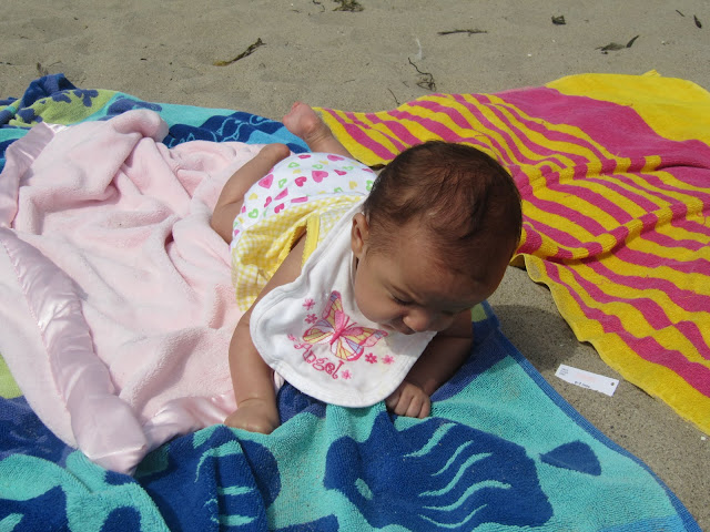 We spent the day at the Santa Monica beach with one of my best friends who flew from New York to meet Belle. We had a GREAT time! Nathan is 95% healed – other than a wet cough he is doing very well. And Belle…she got to hear the roar of the waves and smell the salty air and feel the scratchy softness of the sand on her hands and feet.