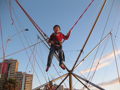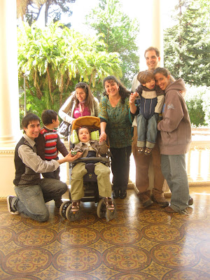 Let me tell you a couple of stories. The wonderful Cybell started reading this blog some months ago. She found our blog through Sonia’s (Mamaterapeuta’s) blog. When she found out I was in Chile, she emailed me and we hit it off from the beginning, it was like we’d known each other our whole lives. Her great friend Karym is Vicente’s mom, who has CP as well. We all met and got together and Karym and I hit it off too and we’ve all gotten to be wonderful friends. You’ve seen plenty of photos with them as we’ve shared many outings. Here is one: