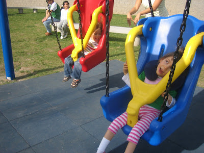 Here they were in a game where we could sit them in their wheelchairs and the kids ran around in circles, like the teacups at Disney. Nathan loved it! (but Rocio wasn’t quite sure). They played at a big seesaw too and both of them LOVED it.
